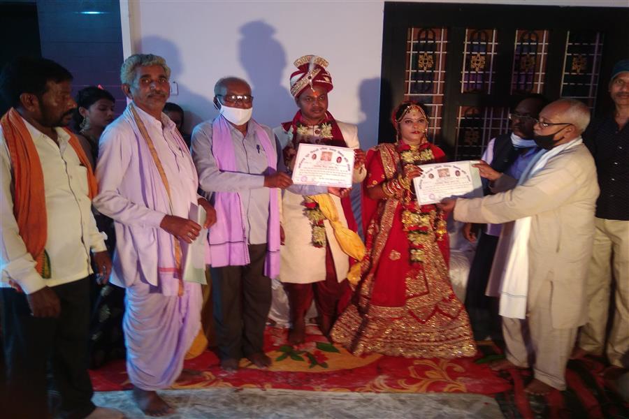 आदर्श विवाह में वर कन्या को आशीर्वाद देते हुए ।